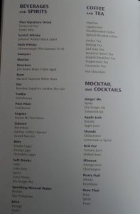 タイ航空ビジネスクラス ドリンクメニュー