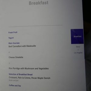 アシアナ航空A380ビジネスクラス 機内食メニュー